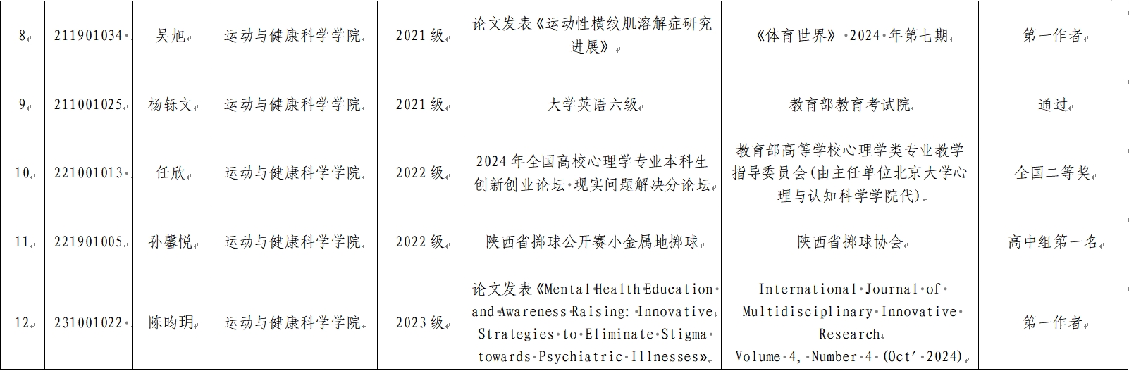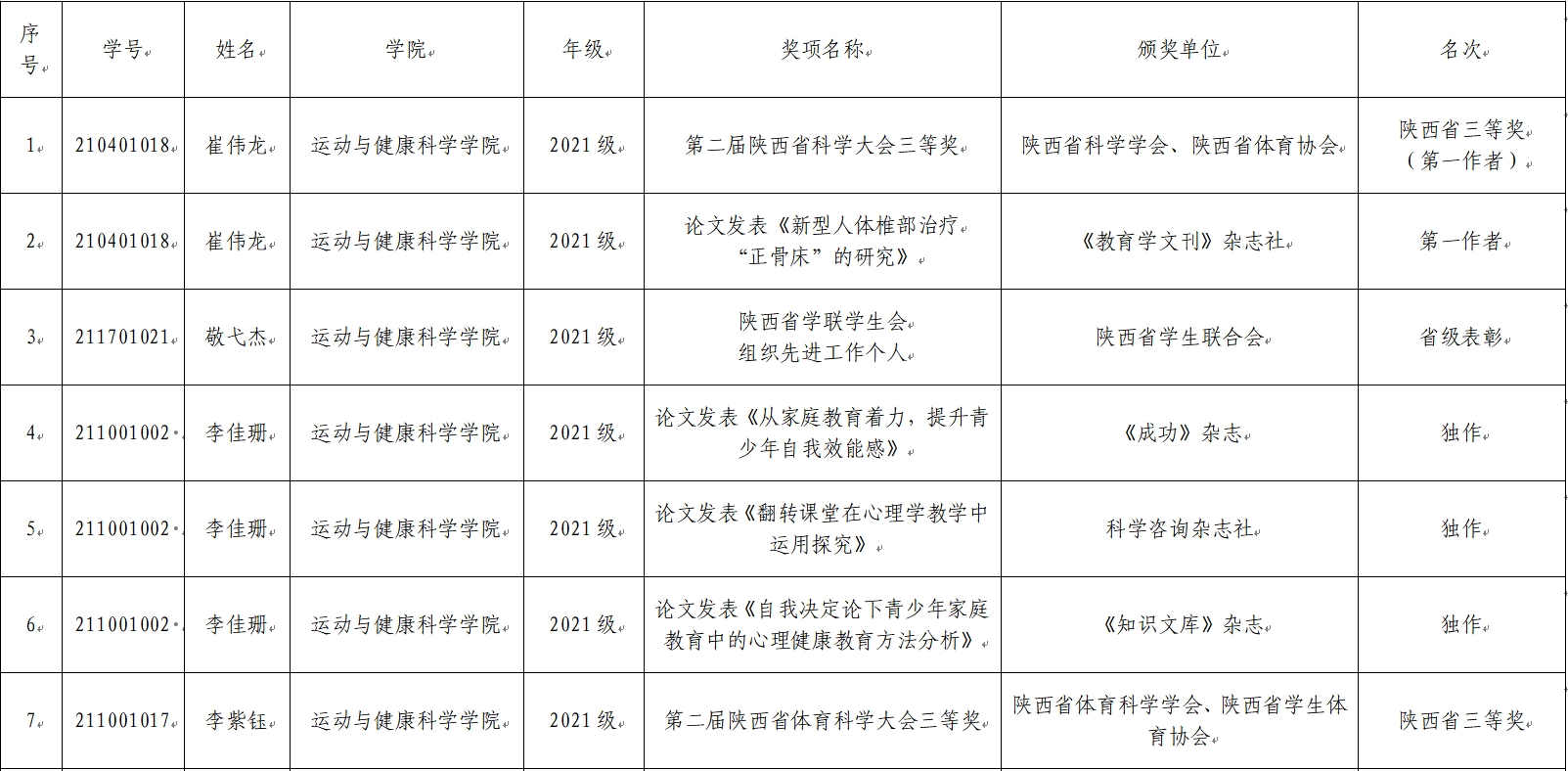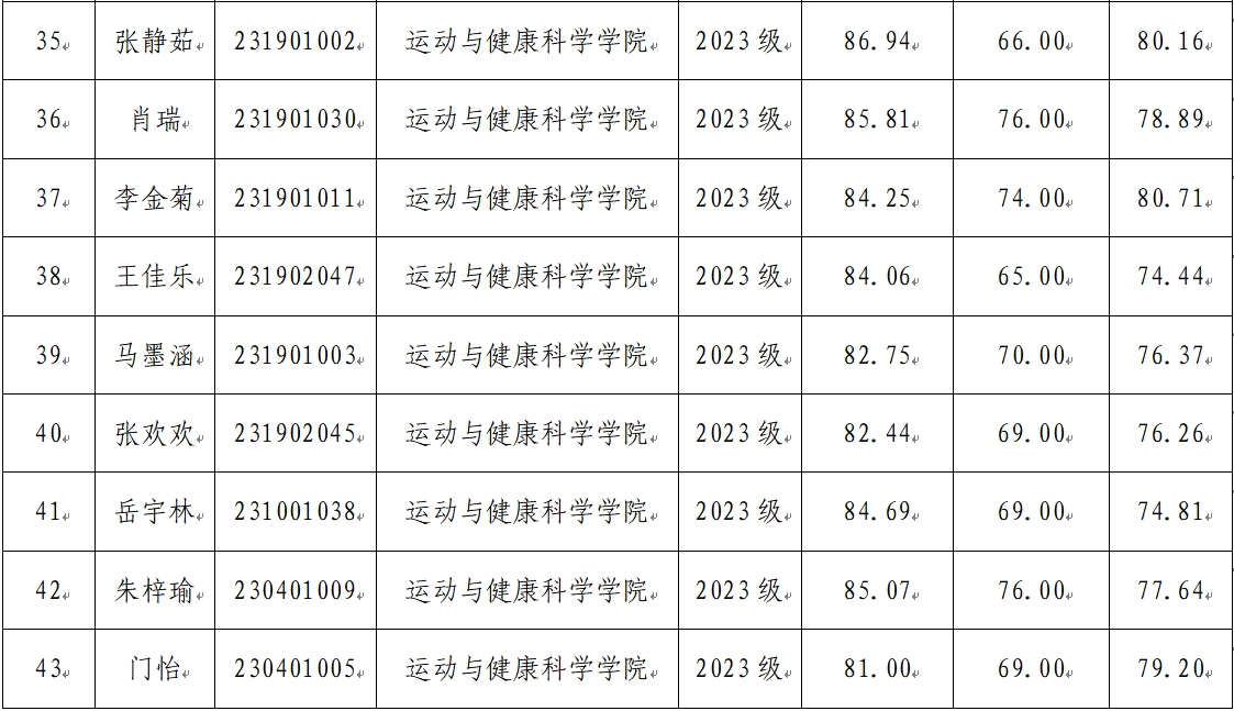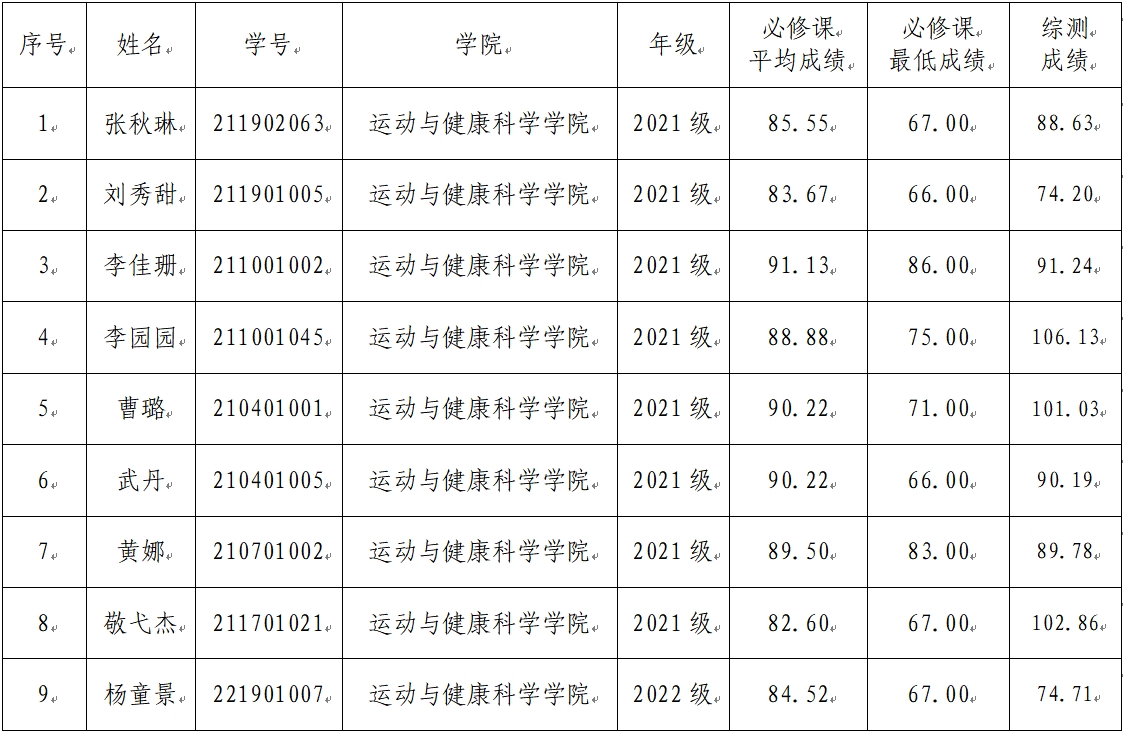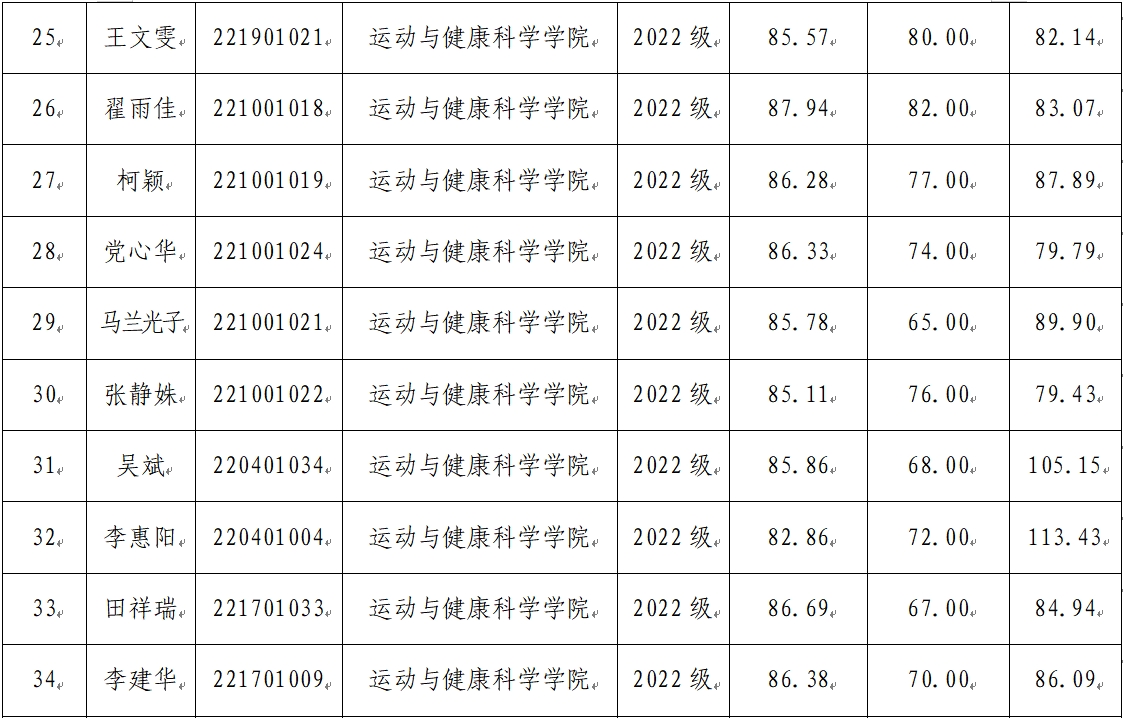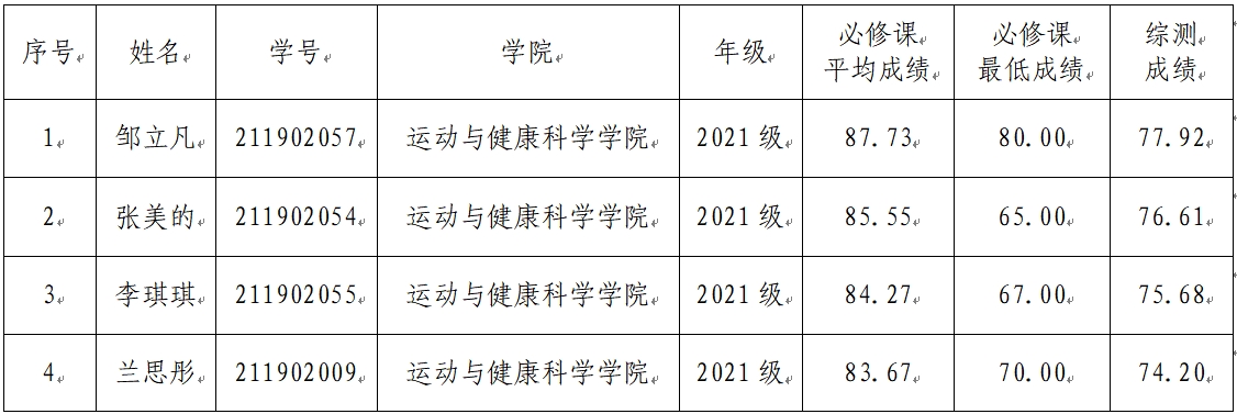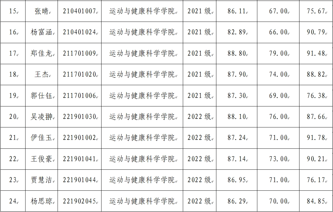 为做好365官网 2023-2024 学年学生评优评先评定工作,我院坚持公正、合理、实事求是的工作原则,严格按照《英国365上市公司官网学生奖励实施细则》井结合《英国365上市公司官网学生德、智、体综合考评办法》进行评选工作。现将运动与健康科学学院学院2021级、2022级、2023级获得三好学生、优秀学生干部、三好学生标兵、优秀学生干部标兵、单项奖学金、先进班集体情况公示如下: