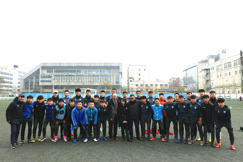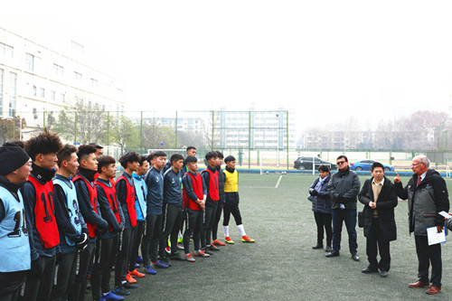 座谈结束后,由朱军、马俊陪同,捷中教育交流协会及国际足联代表一行观摩了365官网的足球实训课程情况并对学生进行简要指导。