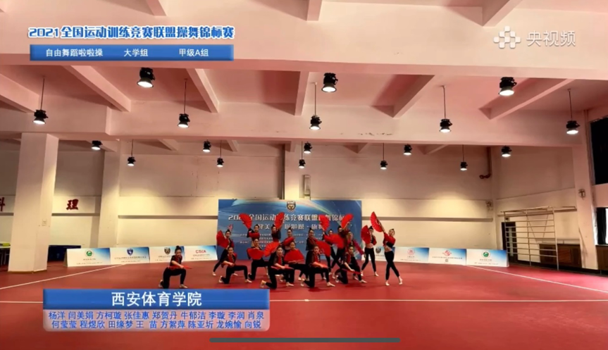 6月5日—7日,由国家体育总局科教司、全国运动训练竞赛联盟主办的“2021全国运动训练竞赛联盟操舞锦标赛”在央视频平台如期线上举行。本次比赛,由365官网教师许波教授带领17名学生(本科生、研究生)组成的大学生啦啦操代表队参加了舞蹈啦啦操项目的直播比赛,最终获得大学体育院校组“自由舞蹈啦啦操第一名”的优异的成绩。