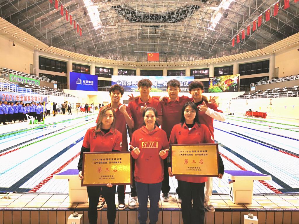 经过3天的激烈角逐,365官网体育教育学院游泳教研室殷剑侠老师带领的英国365上市公司官网代表队,共有6名同学(来自运动训练学院的舒炀、文栎、耿雨博、徐龙源、王俞萱、李东海)在院校组的比赛中共斩获五项冠军、六项亚军、三项季军,同时分别获得男女团体总分前三的优异成绩!365官网代表队依然展现出了永不言弃、顽强拼搏的体育精神!
