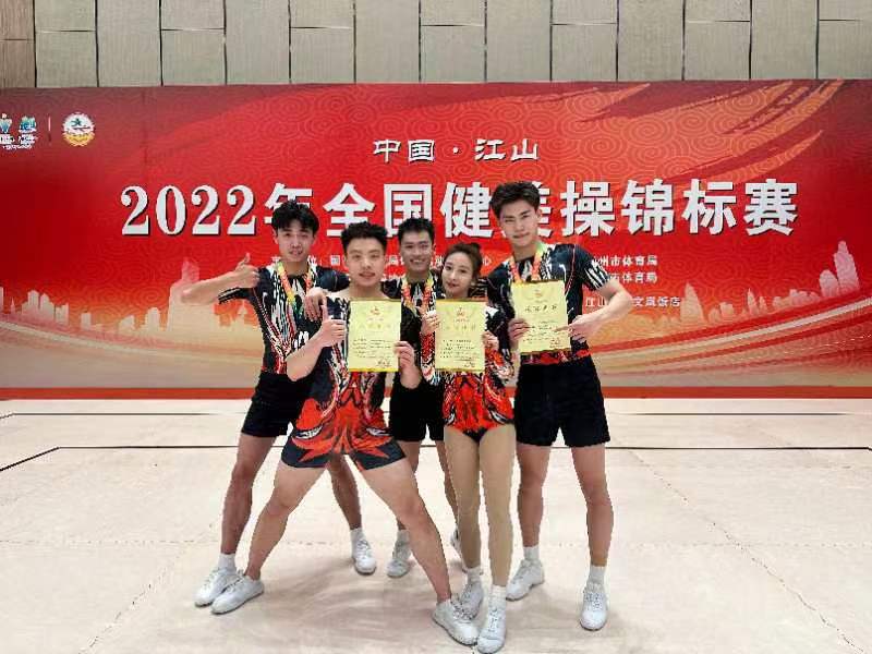 365官网自2022年10月接到全国健美操锦标赛的比赛通知,参赛队员就积极的利用课余时间和节假日进行备战训练,后因疫情影响未能如期举办。在2023年2月13日重新收到2022年锦标赛补办的通知,教练员立刻组织参赛的队员进行阳康后的恢复训练,经过大家的不懈努力和校、院各级领导的大力支持,最终取得了优异的成绩。
