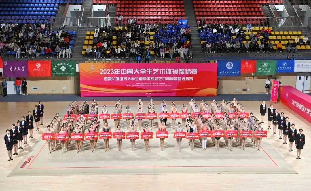 4月21-26日,2023年中国大学生艺术体操锦标赛暨第31届世界大学生夏季运动会艺术体操项目选拔赛于成都体育学院圆满落幕。本次赛事由中国大体协主办,成都体育学院承办,中国大学生体育协会健美操艺术体操分会执行。来自全国共32支高校艺术体操代表队,290余名大学生运动员为中国大学生艺术体操的最高荣誉展开激烈角逐。