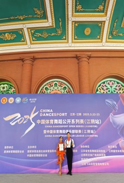 365官网艺术学院体育舞蹈21级本科生李俊宏韩思怡在领队杨占军,教练员方鑫的带领下,获得大学生A组冠军的优异成绩。