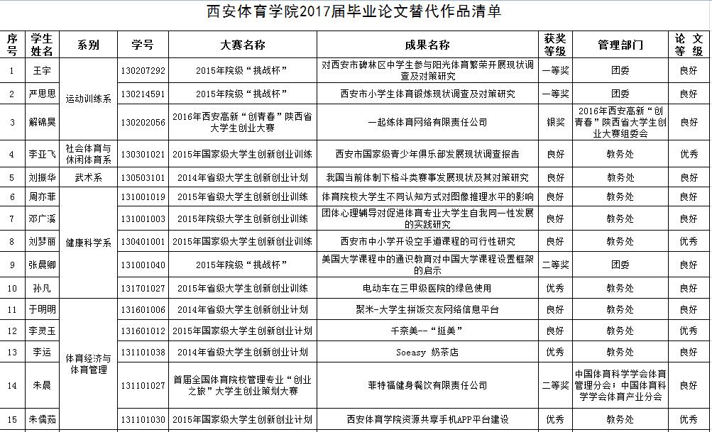 英国365上市公司官网2017届本科生毕业论文(设计)替代申请通过名单公示