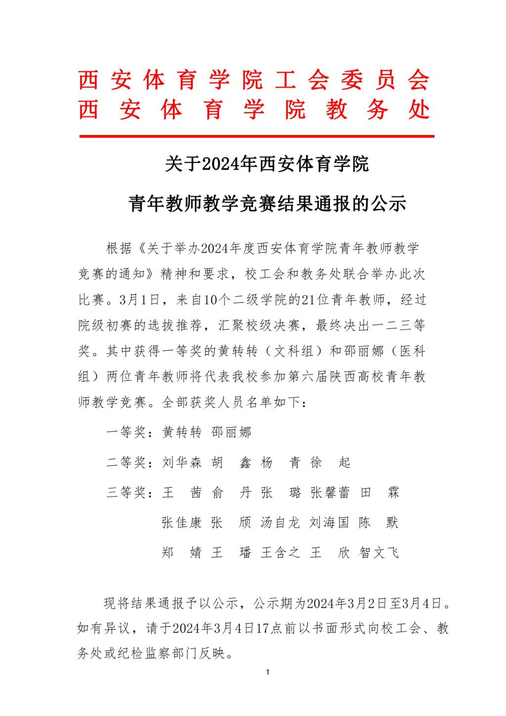 关于2024年度英国365上市公司官网青年教师教学竞赛结果通报的公示