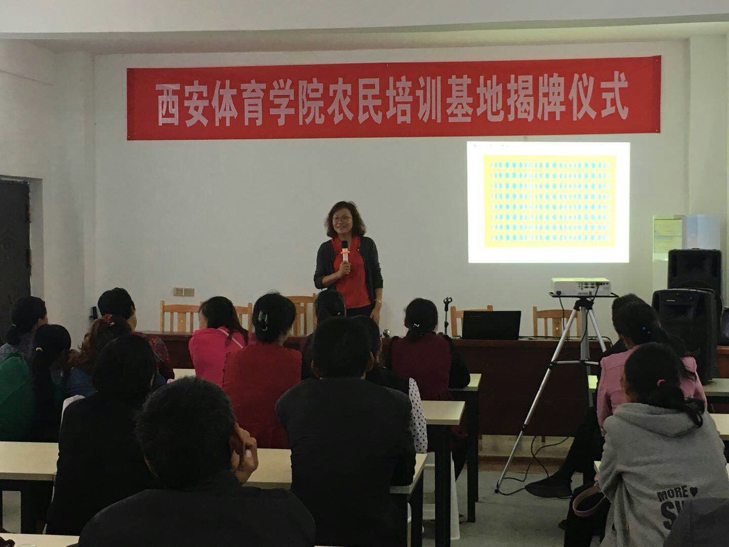 揭牌仪式后,我院还向农民培训基地捐赠了近4万元的培训设备和体育器材,并在基地内举办了“农民心理健康知识讲座”和“健身操舞”培训活动,旨在通过讲座和培训,提高农民群众对心理健康知识的认知水平,熟练掌握一些健身技能,为带动农民家庭脱贫致富奠定良好的基础。