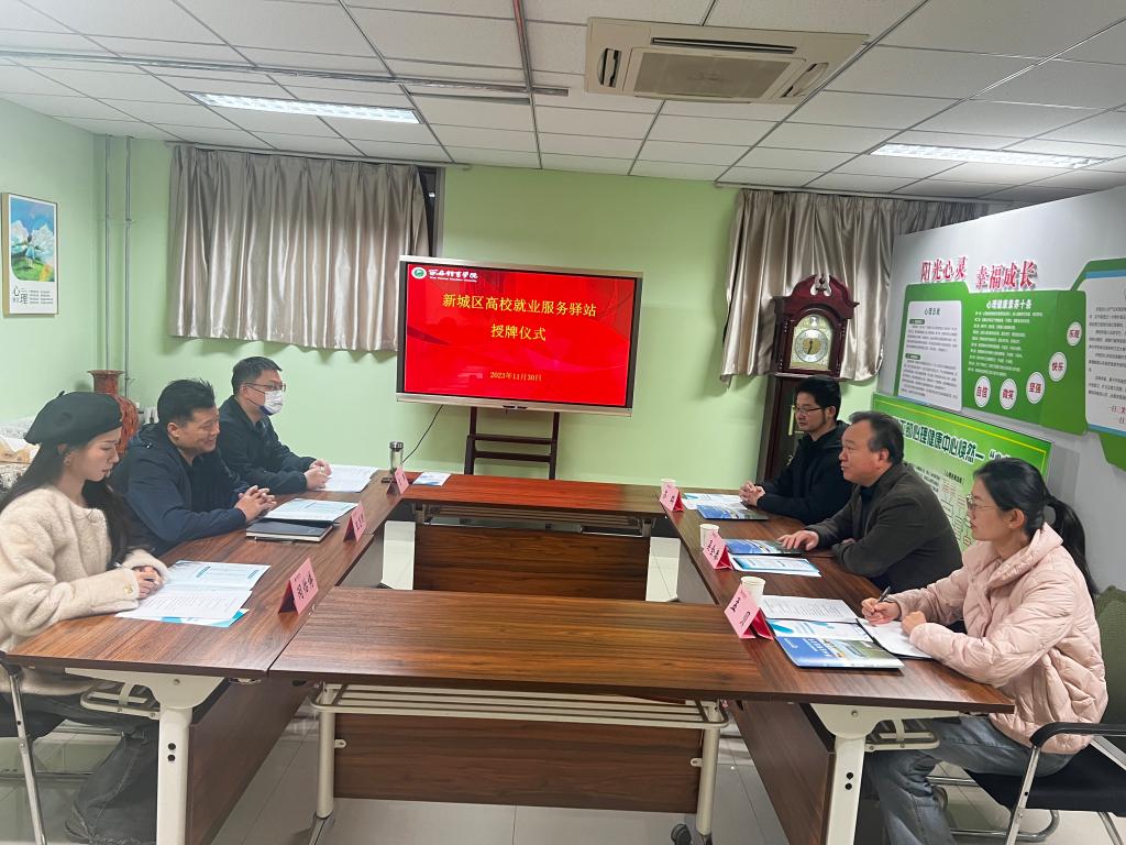 11月30日,学生工作部(处)与新城区人社局共建高校就业服务驿站座谈会在学生工作部(处)会议室举行。学生工作部(处)长王志刚、就业中心主任王鹏,新城区人社局副局长吴全泰、人才中心主任孟贝及相关负责同志参加本次活动。