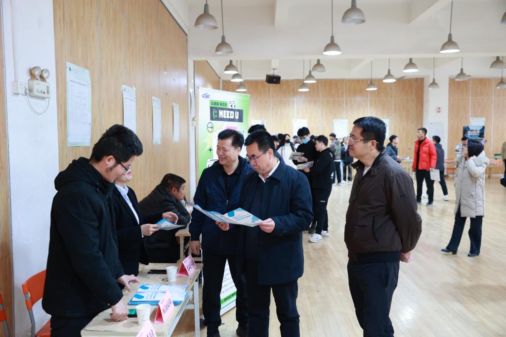 校长李富生、副校长张卫国到会指导,与参会用人单位招聘人员进行了交流,详细了解了用人单位的招聘意向、简历接收、薪资待遇等情况,并与参加招聘的毕业生交谈,询问了他们的求职意向、就业进展等情况。