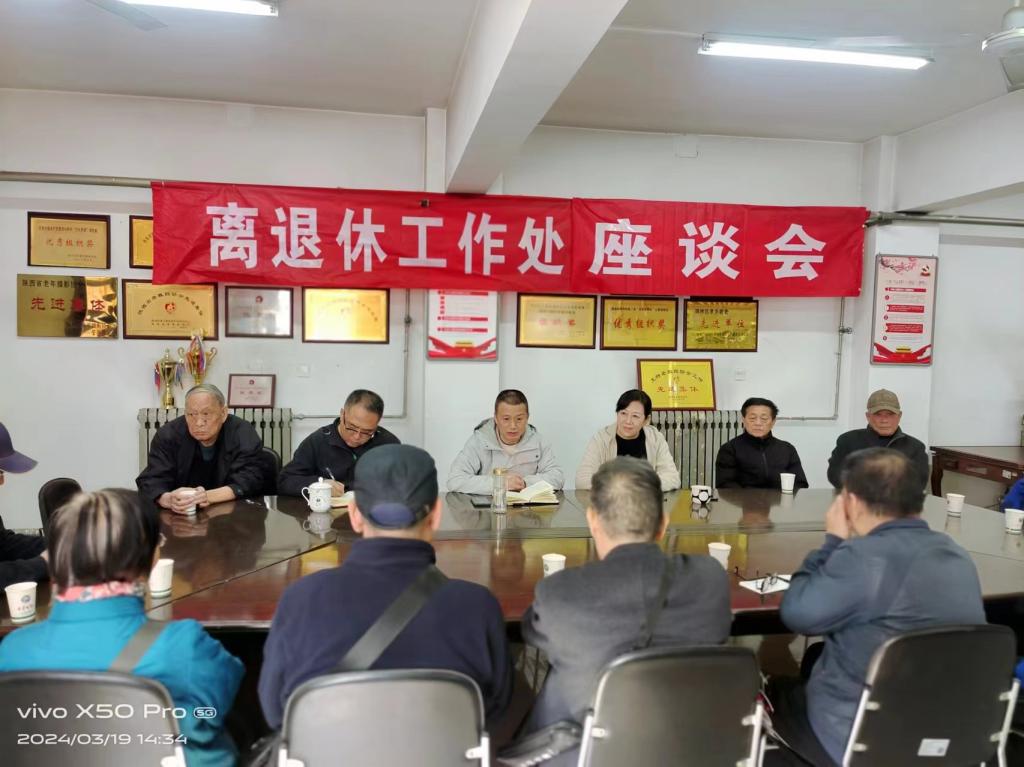 离退休工作处召开离退休教职工座谈会 3月19日下午,离退处工作处在第一活动室召开2024年离退休教职工座谈会,离退休工作处处长朱舰、副处长李倩、处办公室全体干部、离退休教职工代表14人参加了本次座谈会,会议由朱舰主持。