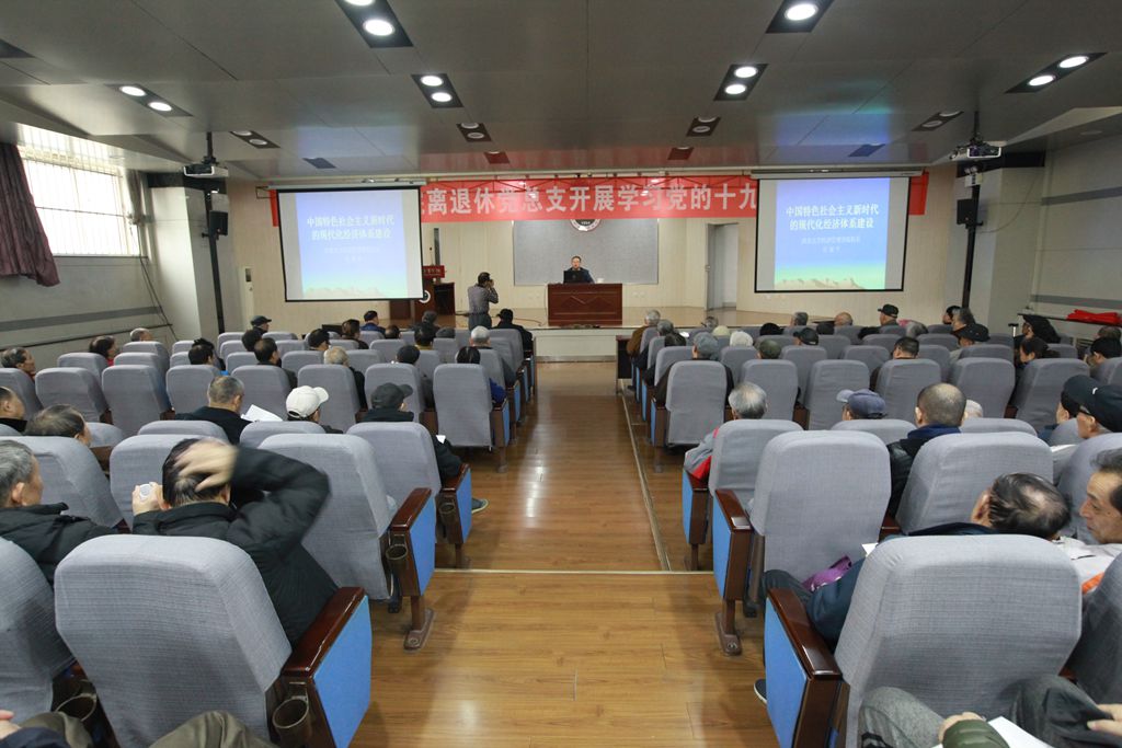 2017年12月12日下午三时,在学院教学楼一楼报告厅,离退休党总支组织全体党员听取了陕西省党的十九大精神宣讲团成员,西北大学经管院院长任宝平教授讲授“中国特色社会主义新时代经济建设基本构思”,报告会进行近两个小时,离退休党员同志全神贯注,认真听取,很多老党员还紧跟课件认真笔记,报告会真正让党员明白了党的十九大精神的基本框架和核心。会后,党员们普遍反映任教授的报告是一次高质量、高水平的报告会,更是一场生动和精彩的报告会,会后,各党支部分头组织党员同志在教学楼前合影留念。