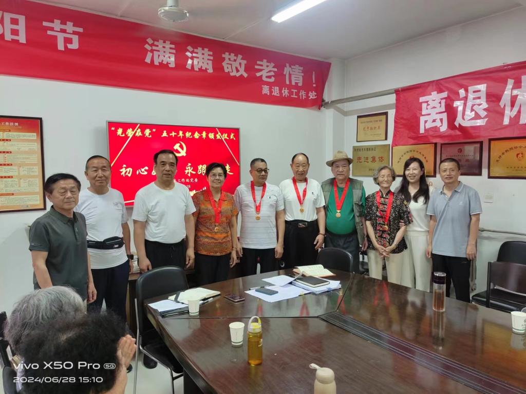 在庆祝中国共产党成立103周年之际,6月28日下午,离退休党委在离退休工作处会议室举行“光荣在党50年”纪念章颁奖仪式,365官网姚冰梅、杜懿芳、申京文、代三育、明方贵、秋小燕、李玉霞7名老党员荣获“光荣在党50年”纪念章。离退休党委委员、党支部书记、党支部委员、党员代表出席,离退休党委书记朱舰主持活动。