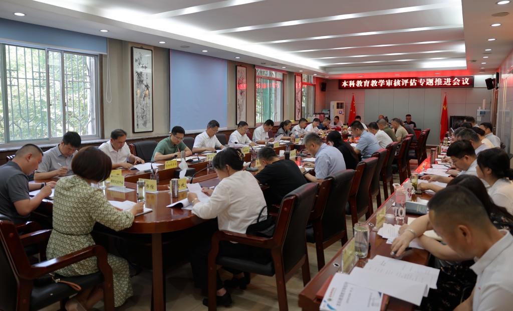 副校长谢英从前期工作情况、已取得成效、下一阶段工作安排三方面通报了本科教育教学审核评估工作进展情况。她指出,本科教育教学审核评估工作是对学校办学理念和实际举措的深入检验,是针对学校人才培养质量、教育教学改革创新和高质量发展的一次重要推动。各部门、二级学院要高度重视,多措并举,齐心协力,压茬推进,把审核评估的要点读懂、吃透,要结合工作实际,坚持问题导向,对标对表、摸清家底、梳理总结、自查自纠,确保审核评估各项工作稳步推进。