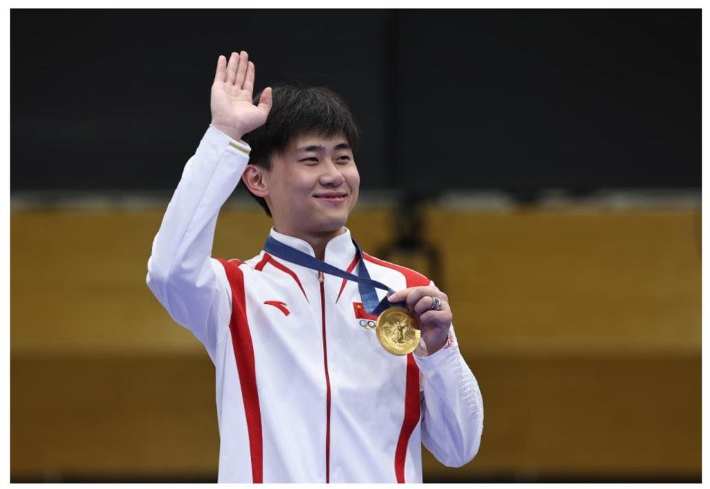 8月1日,冠军中国选手刘宇坤在颁奖仪式上。新华社记者张帆摄