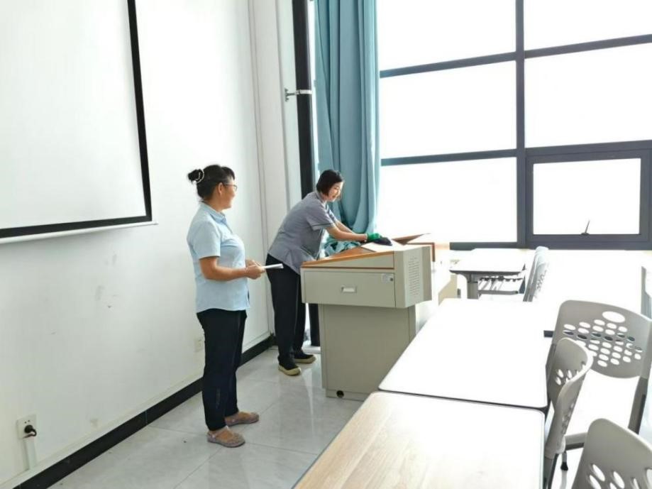 鄠邑校区管委会按照倒排工期表积极准备秋季开学工作,多次召开专题会议,对开学前的各项工作进行了全面部署。管委会成员深入校园各个角落,对公寓、食堂、教学场馆、办公场所等进行了仔细检查,确保各项设施完善、环境整洁。