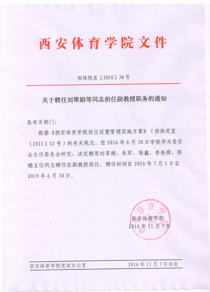 关于聘任刘翠娟等同志担任副教授职务的通知