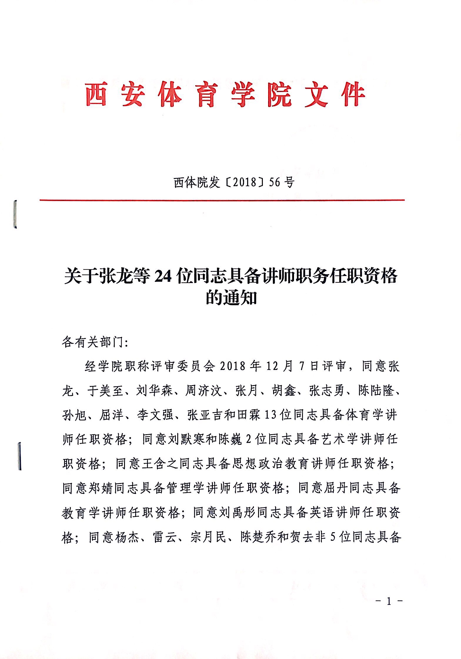 关于张龙等24位同志具备讲师职务任职资格的通知
