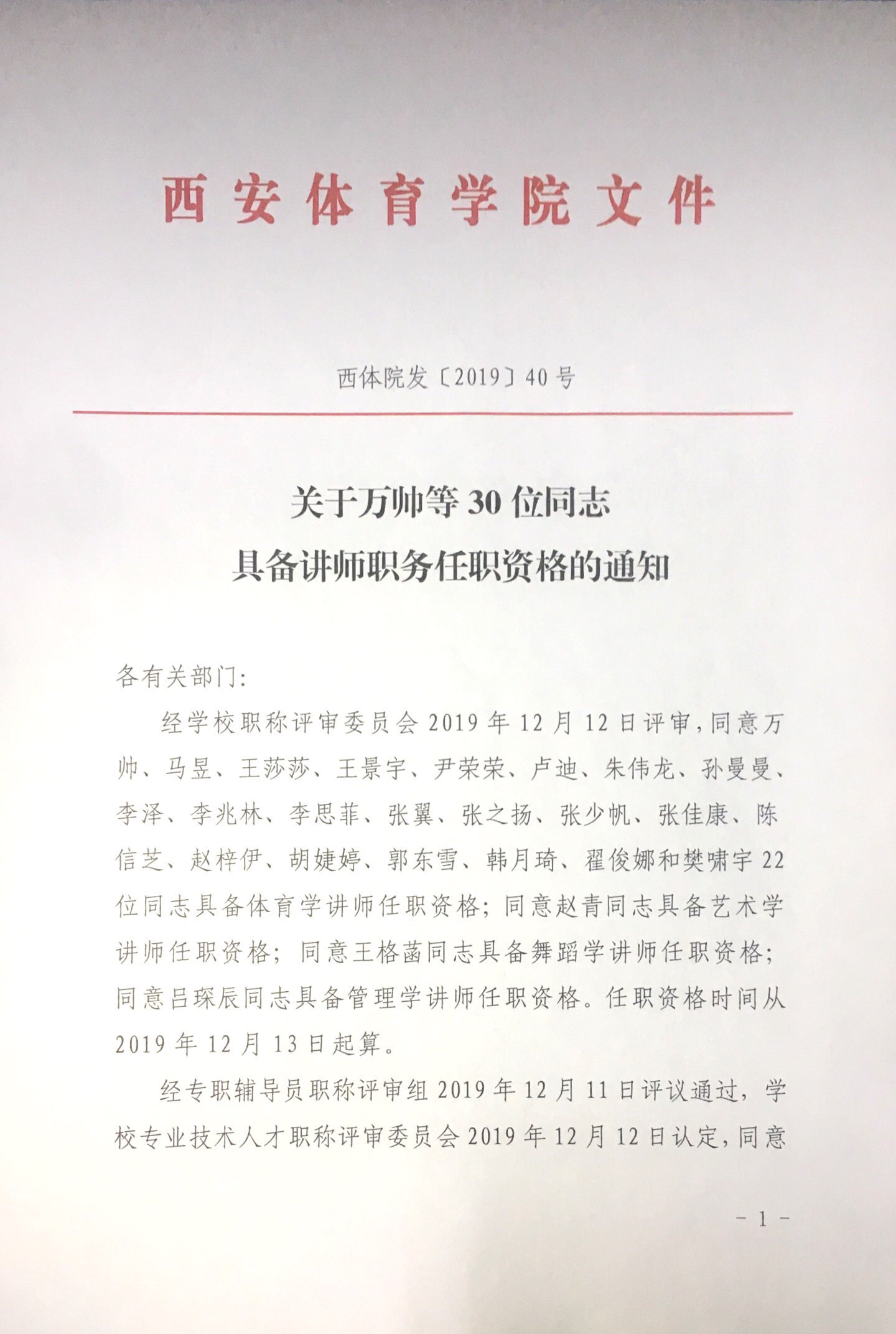 关于万帅等30位同志具备讲师职务任职资格的通知