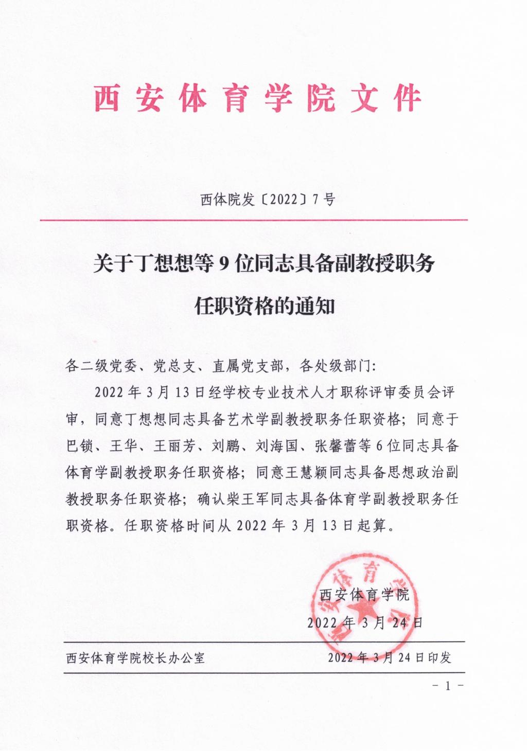 关于丁想想等9位同志具备副教授职务任职资格的通知