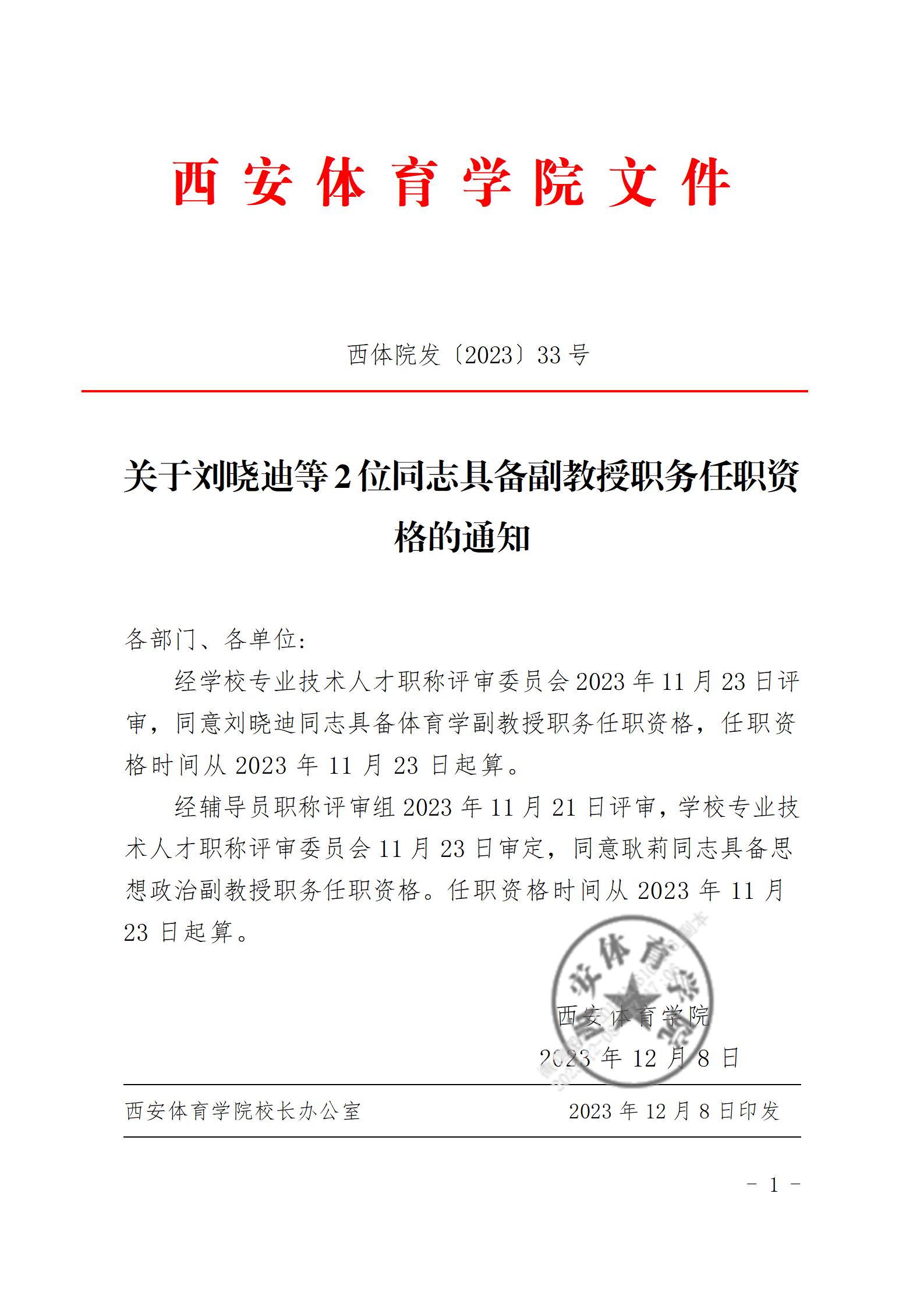 关于刘晓迪等2位同志具备副教授职务任职资格的通知