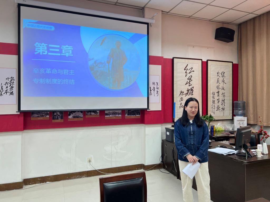 第二个环节,由我院青年教师王含之展示说课。王含之选用《中国近现代史纲要》课程第三章 辛亥革命与君主专制制度的终结作主要内容,从重难点处着手,将本章节需要学生掌握和了解的内容作以讲解和阐述。说课效果良好。