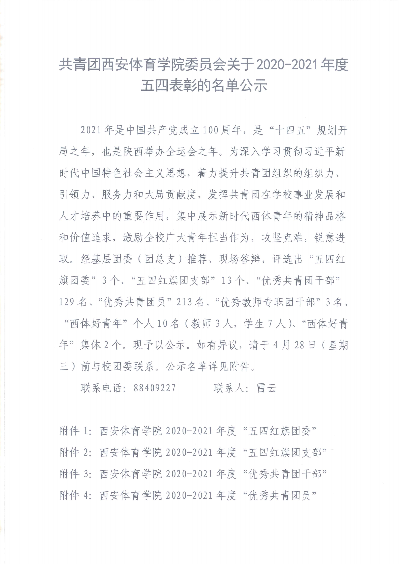 共青团英国365上市公司官网委员会关于2020-2021年度五四表彰的名单公示