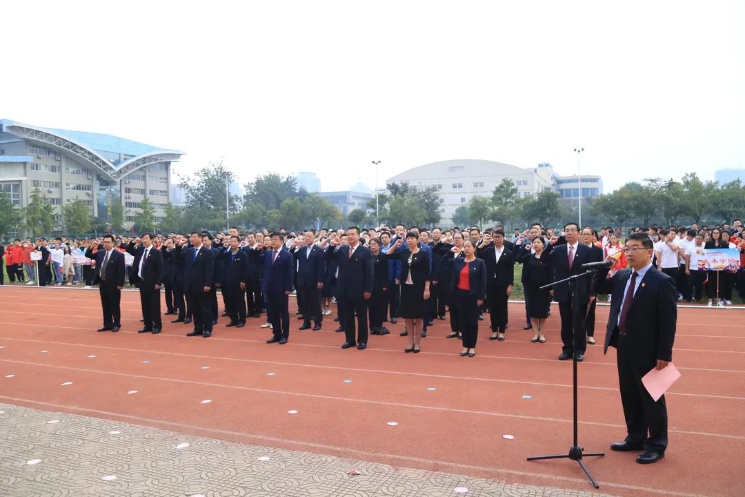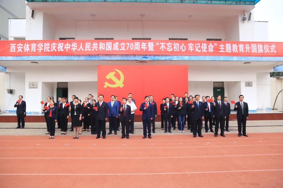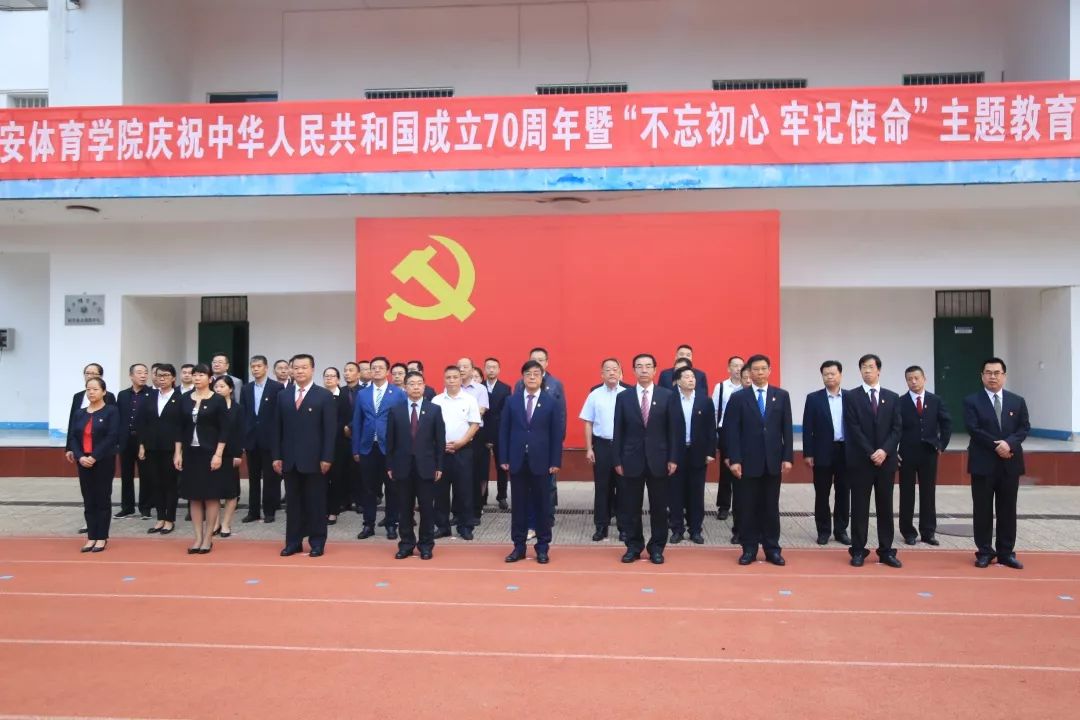 为庆祝中华人民共和国成立70周年,深入开展“不忘初心、牢记使命”主题教育,歌唱新时代奋斗主旋律,弘扬师生的爱国精神,365官网于2019年10月1日早7:00在第一田径场举行庆祝中华人民共和国成立70周年暨“不忘初心、牢记使命”主题教育升旗仪式。英国365上市公司官网校领导、各二级党委书记、校团委全体成员、学工部、各单位主要负责人、全体辅导员、二级学院教师代表、学生代表、近两年发展的70名党员参加了升旗仪式,升旗仪式由校长朱元利主持。