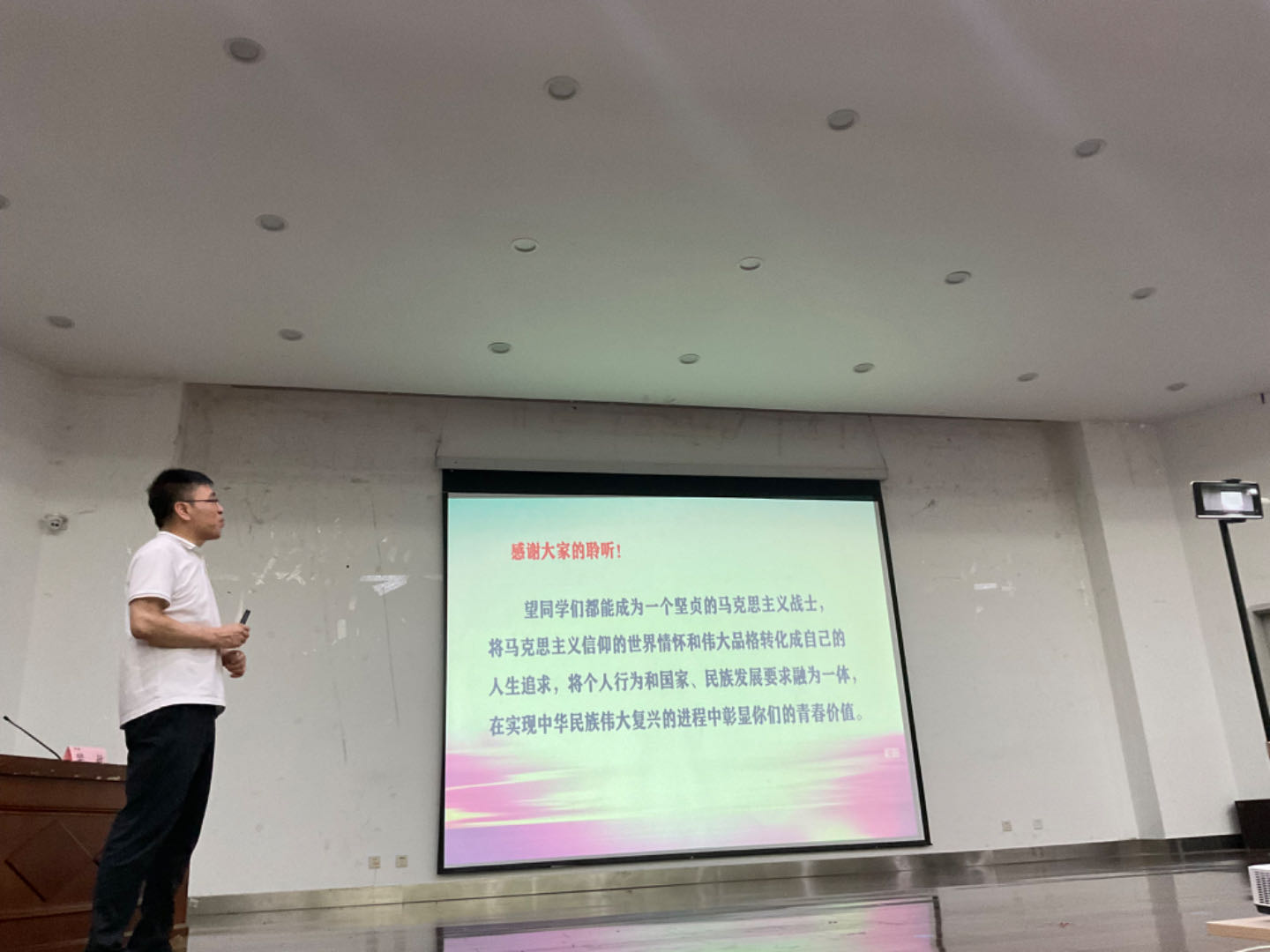 最后,樊敏老师希望同学们都能成为一个坚贞的马克思主义战士,将马克思主义信仰的世界情怀和伟大品格转化成自己的人生追求,将个人行为和国家、民族发展要求融为一体,在实现中华民族伟大复兴的进程中彰显青春价值。