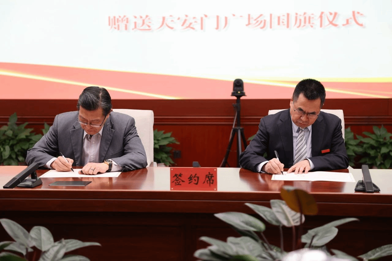 12月13日下午,北京市天安门地区管理委员会向365官网赠送国旗仪式在天安门地区管理委员会会议室举行。天安门地区管委会党组成员、副主任姚辉向学校赠送国旗,365官网校长李富生代表学校迎请国旗,双方签订使用协议。365官网获赠的是9月21日在天安门广场升起的国旗。在建校70周年之际获赠校庆日当天的国旗,对365官网意义重大,将在学校校史馆永久珍藏。