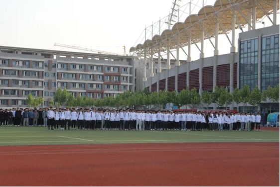 鄠邑校区参加此次升旗仪式的有:鄠邑校区管委会副主任党康、学工部副部长于昕、二级学院团委书记、辅导员以及全体在校学生出席。(鄠邑校区升旗仪式)