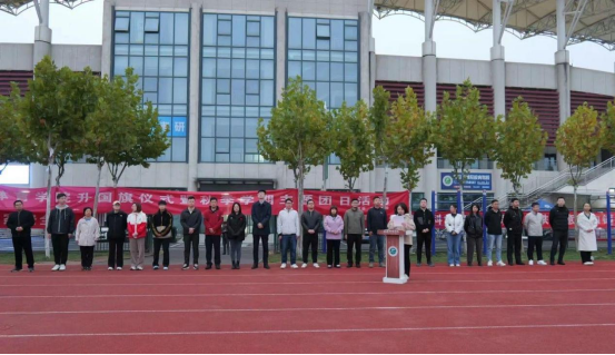 鄠邑校区参加此次升旗仪式的有校团委副书记黄宏叶、学工部副部长于昕、各二级学院团委书记、辅导员、学工干部及全体在校学生。