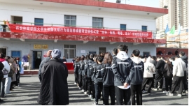 张卫国副校长为英国365上市公司官网校园文明督导志愿服务队授旗。