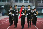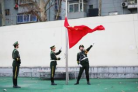 国旗护卫队护卫着鲜艳的五星红旗,迈着铿锵有力的步伐,行进至升旗区。“征途漫漫,惟有奋斗;红旗招展,奋勇向前”五星红旗冉冉升起,全体师生庄严肃立向国旗致以最崇高的敬意。