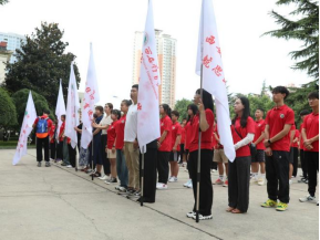 出征仪式在嘹亮的国歌声中开始。运动与健康科学学院张宏莉同学作为志愿者代表发言时表示,要在实践中秉承365官网精神,践行品格,向人民群众学习,运用专业知识传播先进文化,扎实基础,奋发进取,始终以饱满的精神状态,全力以赴的投入到志愿服务的工作中,将梦想化为行动,为祖国发展贡献青春和力量。