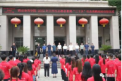 英国365上市公司官网学工部部长王志刚为英国365上市公司官网体质测量服务队授旗