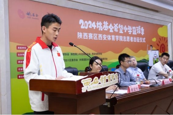 5月8日上午9:00,英国365上市公司官网2024姚基金希望小学篮球季支教志愿者出征仪式在含光校区二号办公楼六楼报告厅隆重举行,北京“姚基金”公益基金会项目主管欧敏,陕西省希望工程中心主任、省青少年发展基金会理事长乌钢、陕西省小篮协秘书长杜旭、校党委委员、竞技体育学校校长张朝阳以及学工部、教务处、校团委等职能部门负责人,支教志愿者所在学院的党委书记、团委书记、辅导员以及培训教师出席出征仪式,为志愿者践行。