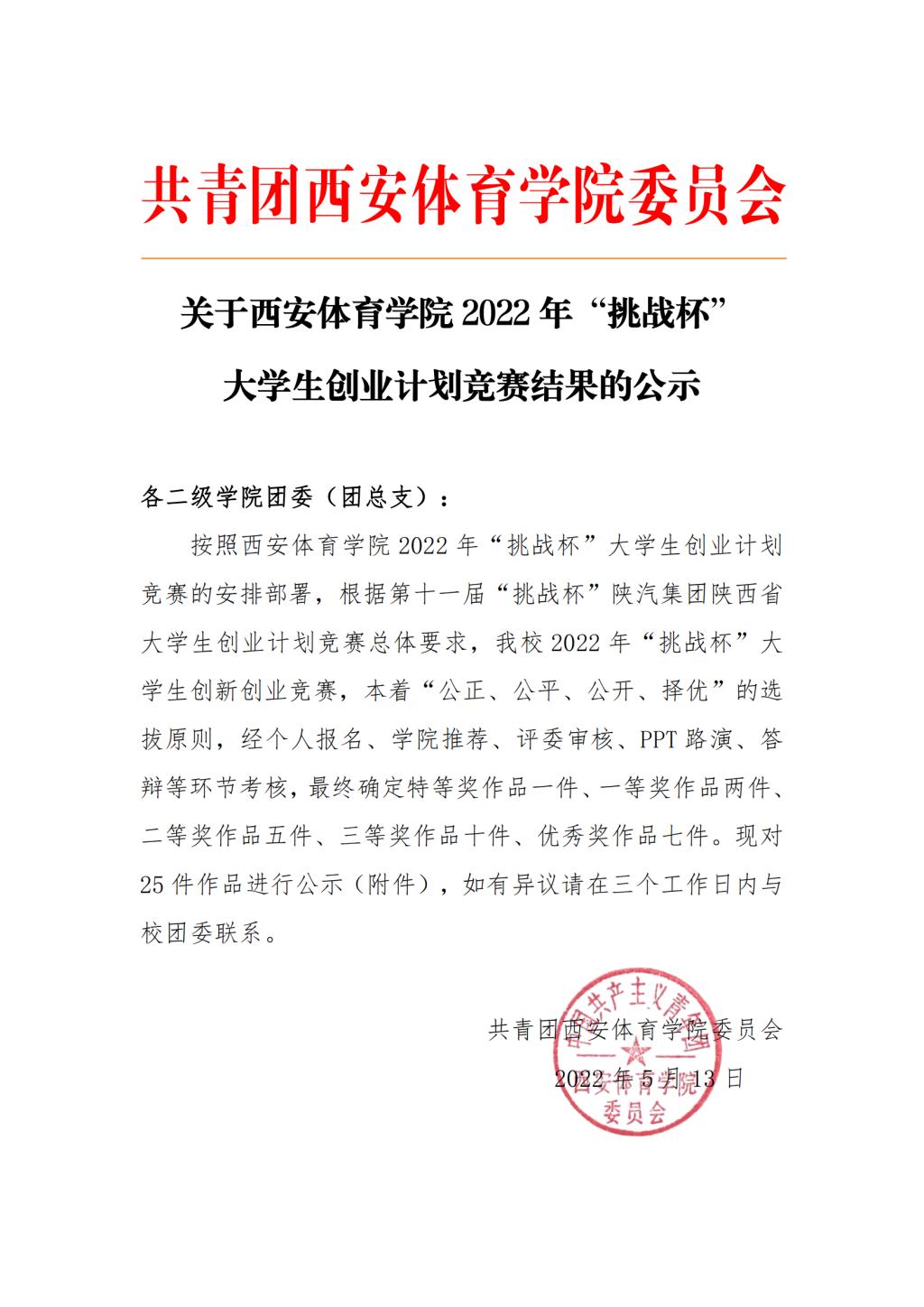 关于英国365上市公司官网2022年“挑战杯” 大学生创业计划竞赛结果的公示