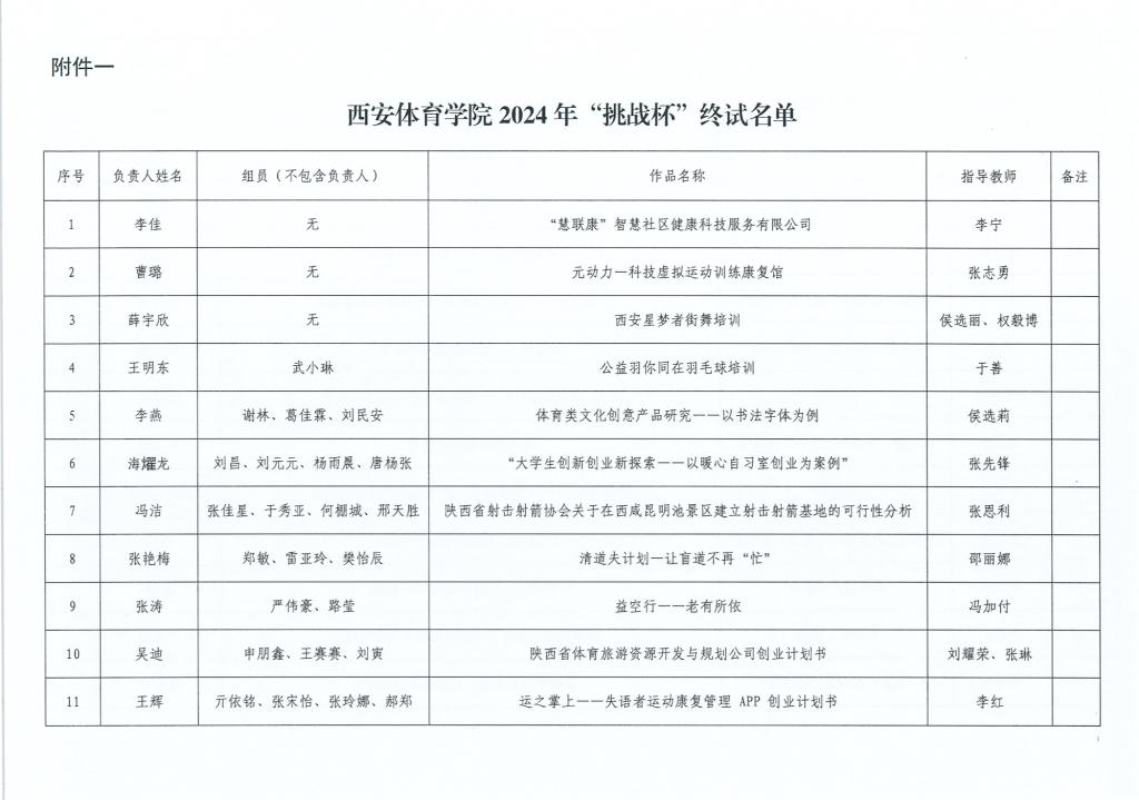 关于英国365上市公司官网2024年“挑战杯”全国大学生创业计划竞赛终试名单的公示