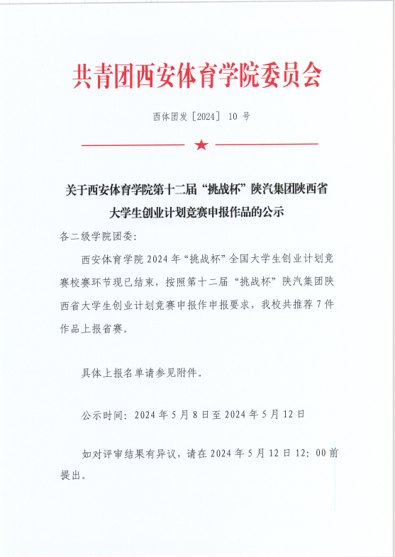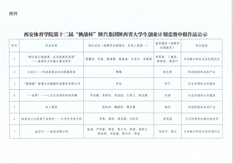 关于英国365上市公司官网第十二届“挑战杯”陕汽集团陕西省大学生创业计划竞赛申报作品的公示.pdf