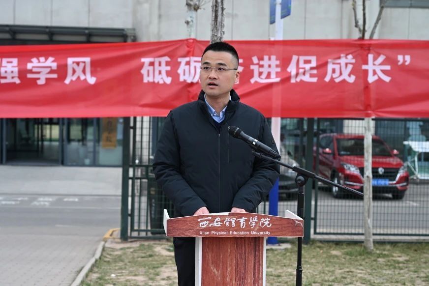 学工部副部长于昕、学工部副部长郭维刚分别在两校区宣读了学风建设倡议书,号召全体师生共同营造优良学风。提出三点要求:一是"砥砺深耕",师生携手创建勤奋好学、求实创新的学习氛围,教师提升教学质量,学生夯实专业基础;二是"慎思笃行",倡导理论联系实际,树立诚信友善的校园风尚;三是"团结协作",鼓励师生互帮互助,共创辉煌。倡议强调优良学风是立校之本,号召师生从自身做起,践行"勤奋严谨 求是自强"的校风,为实现个人成长和学校发展而奋斗。