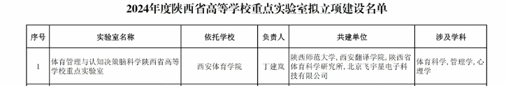 体育管理与认知决策脑科学陕西省高等学校重点实验室申报成功