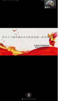 为学习贯彻十三届全国人大五次会议第二次全体会议精神,体育经济与管理学院学生党支部于3月9日下午19:00在线上召开《学习第十三届全国人大五次会议第二次全体会议》主题党日活动,参加此次活动的成员有霍达同志、胡雪妍同志、任琳同志以及学生党支部全体党员同志。