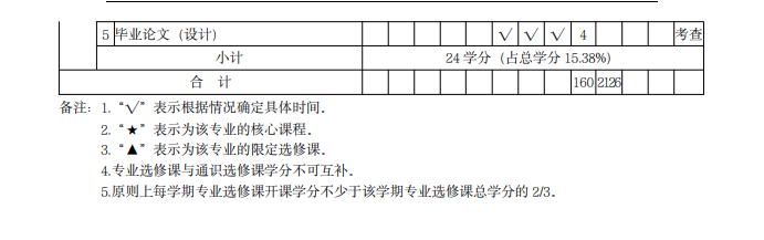 七、毕业条件 修完本专业培养方案所规定的课程与环节,达到 160 学分,其中必修课 102 学分,选修课 34 学分,实践性教学环节 24 学分。学生修业期满达到毕业要求, 准予毕业,颁发本科毕业证书;符合学士学位条件,授予管理学学士学位。