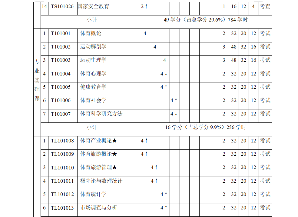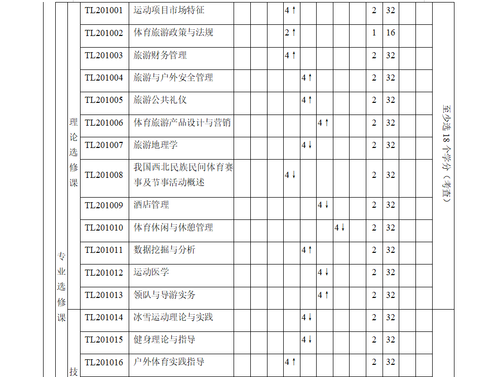 备注:1.“√”表示根据情况确定具体时间。“↑”表示前八周上课,“↓”表示后八周上课。
