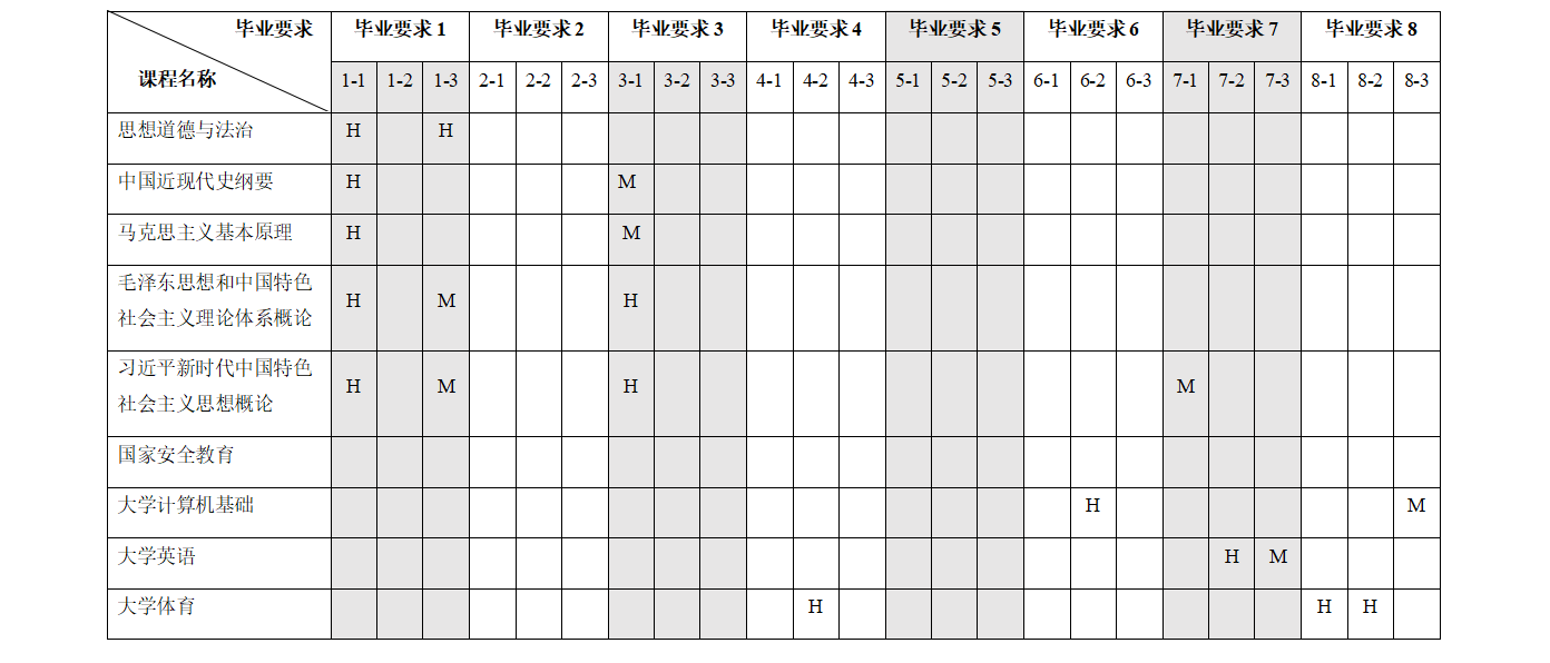 八、课程体系与毕业要求指标点支撑矩阵