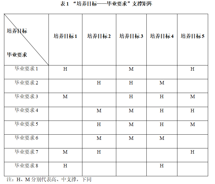 3.2 毕业要求对培养目标的支撑矩阵(表1)