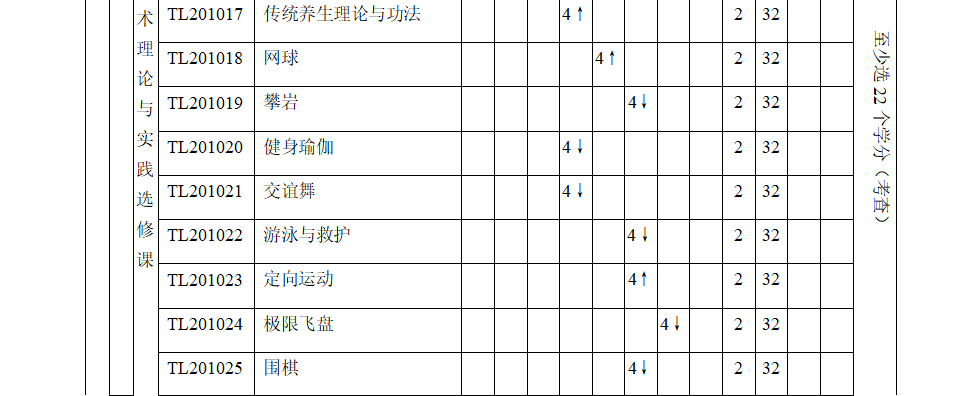 4. 专业选修课与通识选修课学分不可互补。