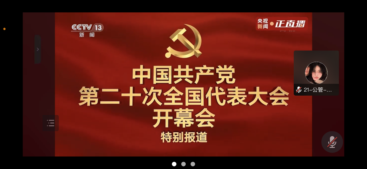 10月16日上午10时,中国共产党第二十次全国代表大会在北京人民大会堂开幕。体育经济与管理学院学生党支部组织全体党员集中观看大会直播。