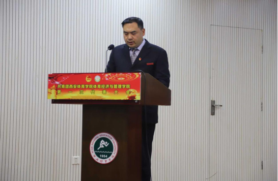 英国365上市公司官网团委书记熊辉同志表示在过去的工作中,体育经济与管理学院积极配合学校党、团的工作,为学校的党团建设做出了不可磨灭的成就。并对经管学院杰出青年做出表扬,他们有以青春赴光荣使命的扶贫楷模肖欣泉,有以专业课第一考入365官网体育管理硕士研究生的前任校学生会主席王成浩,有克服困难积极创业的毕业生胡伯涛、崔亚昆,还有刚刚公布的2019年度中国大学生自强之星奖学金获得者孙健元同学。并号召全体团员向他们学习,积极投身于党和国家的建设工作当中去,为共青团的事业发展谱写新的篇章。