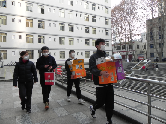 为激励凝聚广大团员、青年积极投身疫情防控工作,2022年1月3日下午,体育经济管理学院副院长党挺、团委书记任琳、辅导员任林林深入学生公寓及学校食堂看望慰问疫情防控一线的三十余名志愿者,为他们送去了方便面、水果等慰问品及口罩、消毒液等防疫物资。