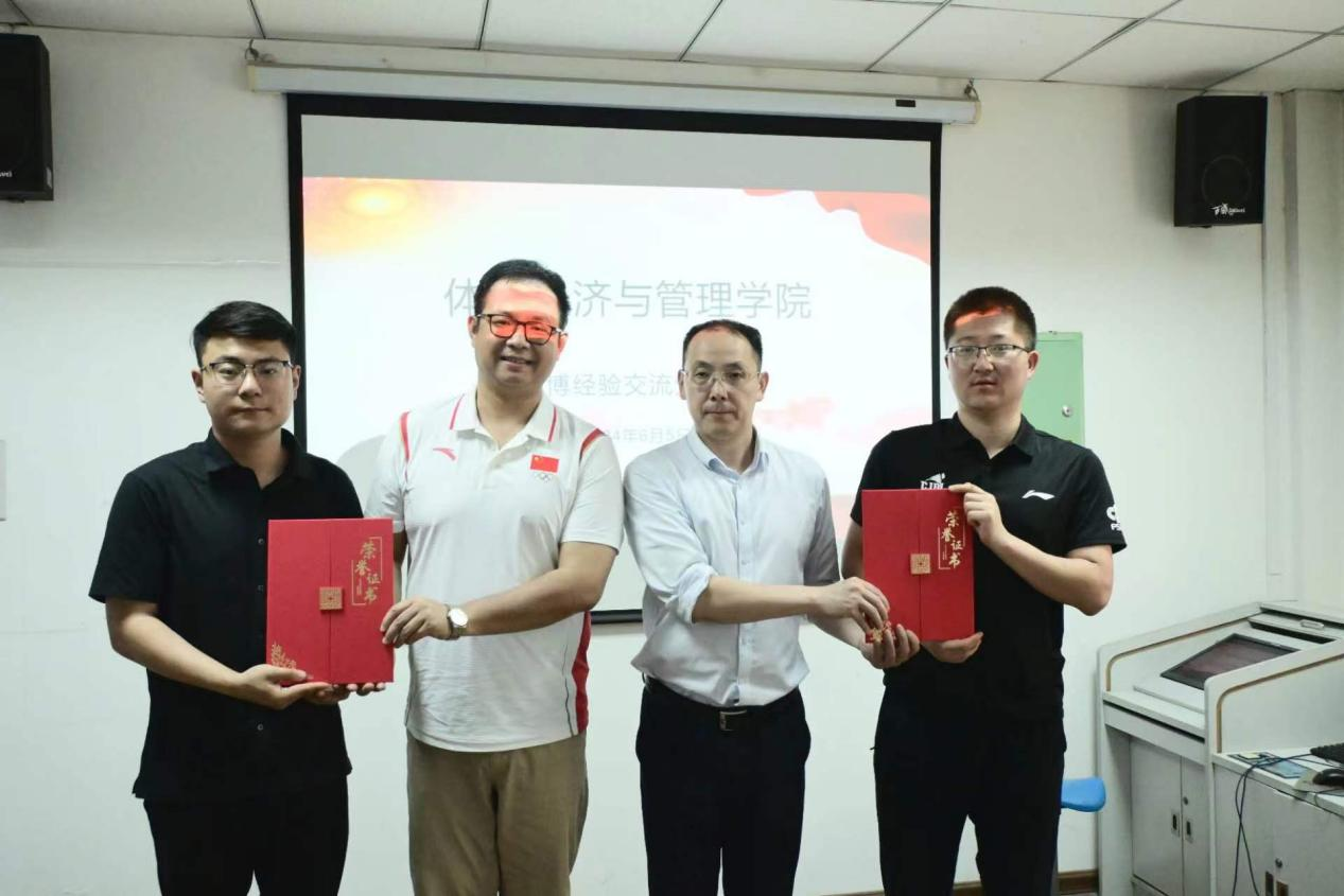 为进一步加强研究生学风建设,引导研究生早日明确学术目标和职业规划,搭建考博经验交流平台。2024年6月5日,体育经济与管理学院在实验楼513会议室举行考博经验交流会。会议邀请考博上岸的2024届优秀研究生苟轶清和江礼磊与会分享经验,为我院有志于考博的研究生传授经验,指明方向。